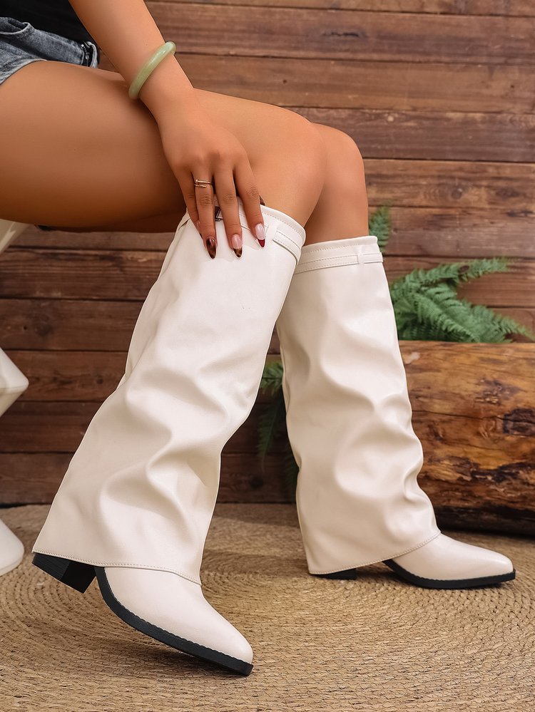 Step into the dark side of elegance. The Eclipse Chunky Boots combine gothic structure with refined sophistication — featuring a glossy PU leather finish, sharp pointed toe, and commanding block heel. Built for power and presence, these boots redefine what it means to walk with confidence.