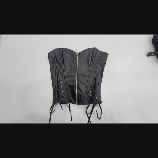 The Gothic Punk Zipper Corset commands attention with its fusion of gothic romance and punk-inspired design.