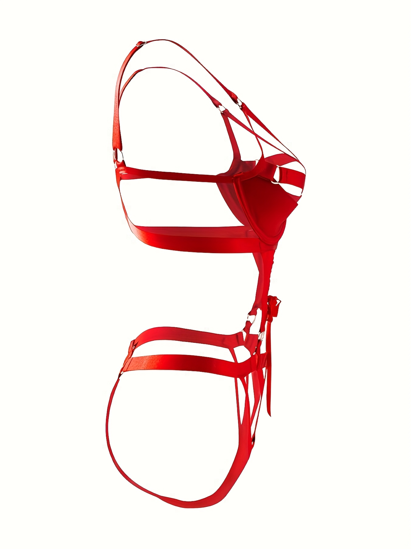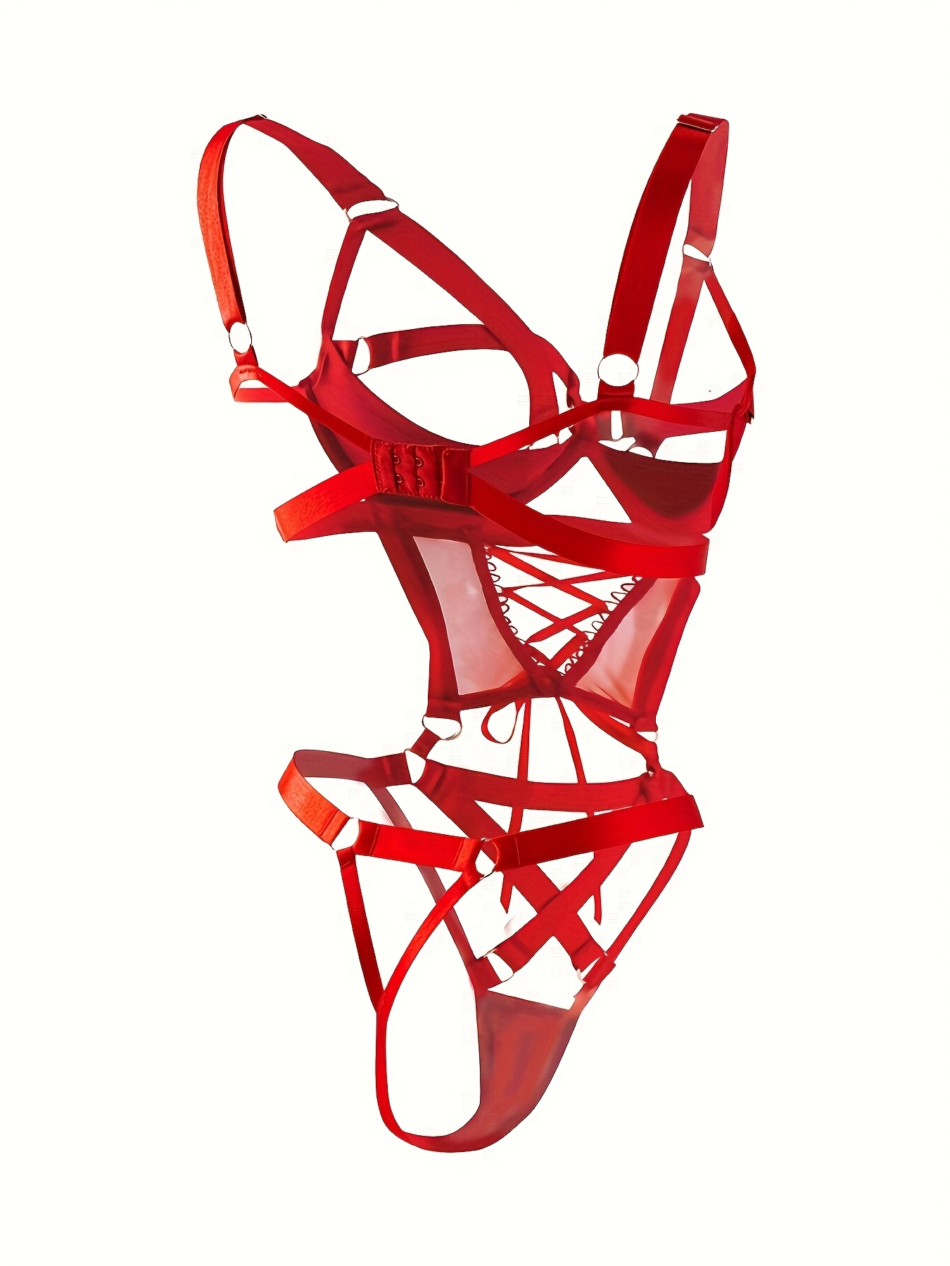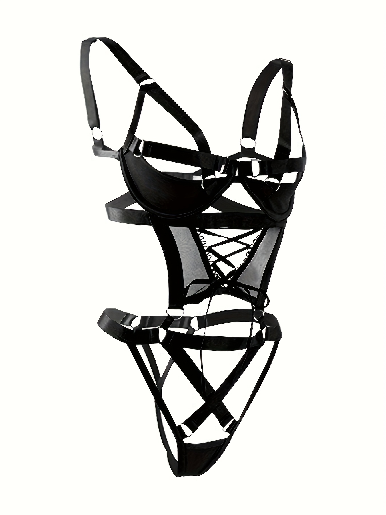 The Secret Lingerie Bodysuit captures sensuality through its daring cross-strap and cut-out design. Crafted from a semi-sheer, stretch-infused polyester blend, it contours every curve while keeping a soft, breathable touch. Adjustable straps ensure a precise fit that enhances your silhouette — perfect for intimate evenings or layered under bold night-out looks.