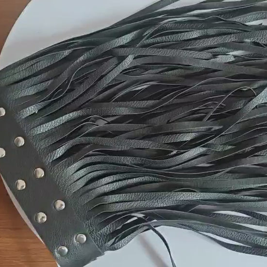 Unleash your boldest side. The Temptress Fringe Mini Leather Skirt blends rebellion and seduction — crafted from smooth faux leather and finished with flowing fringe that moves with confidence. Its adjustable studded belt defines your waist, creating a silhouette that commands every room.